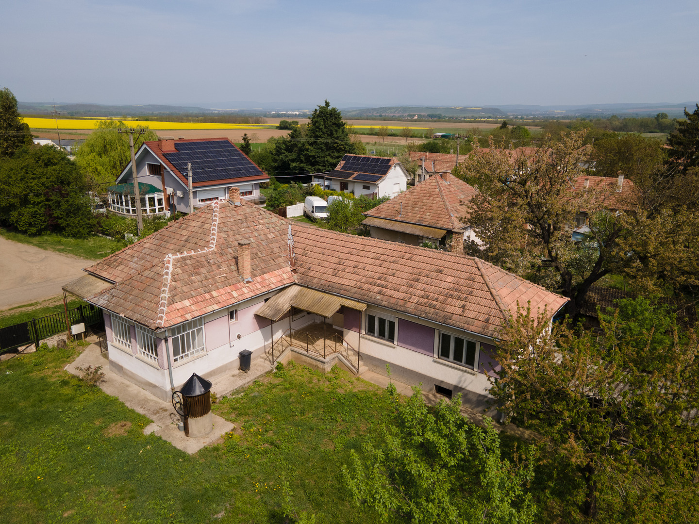 Az ingatlan egy csendes, jó lakóközösségű utcában található, a település szélén, de a központ pár perc sétával elérhető.