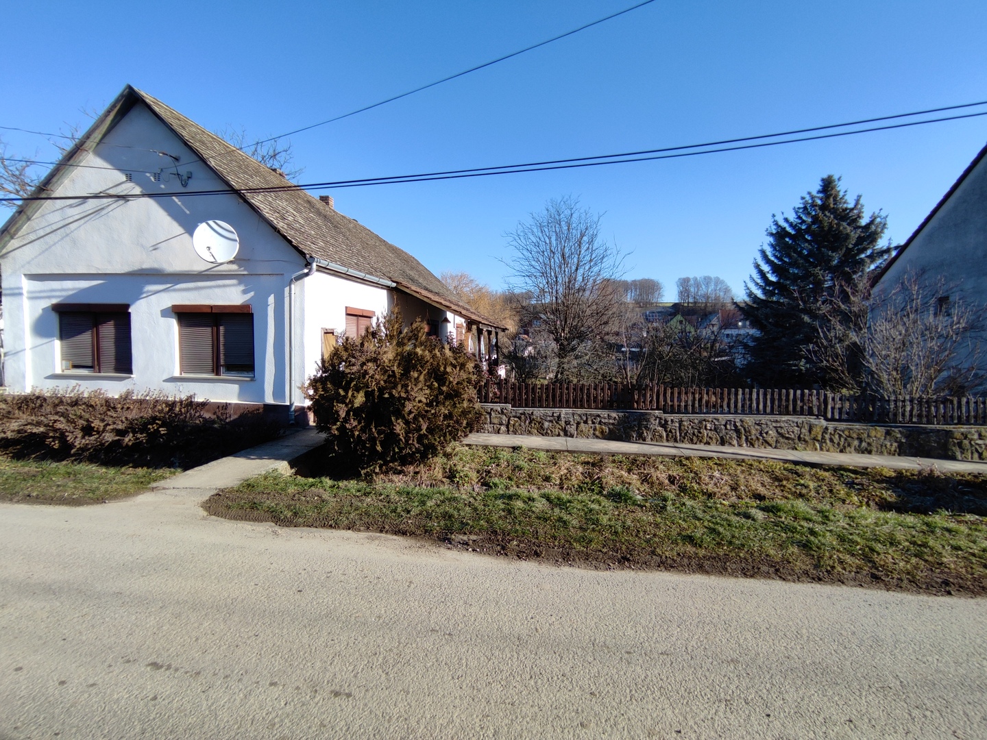 A ház falazata 80 %-ban tégla, jó állapotú, vizesedés nem látható. A tető felújítandó, régi típusú cseréppel fedett. A nyílászárók, burkolatok szintén felújításra szorulnak. A lakórészben nappali-étkező-konyha, fürdő WC-vel és három szoba található. A központi fűtést fatüzelésű kandalló biztosítja, a meleg vizet villanybojler, gázcsonk a telken.