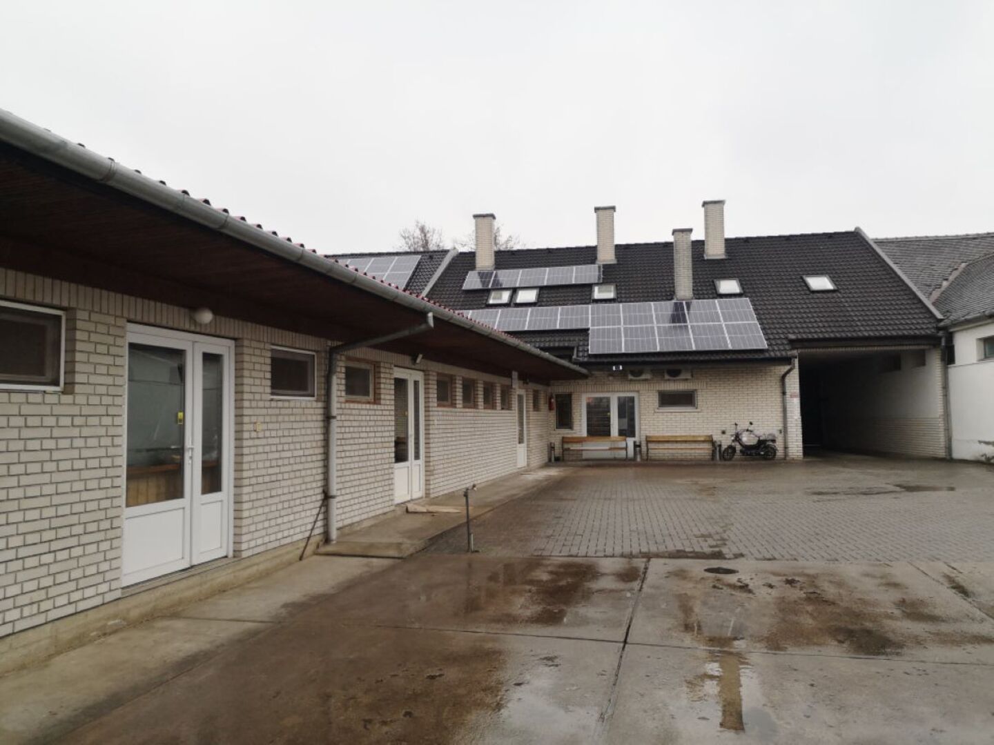 teherbírású úttal, ipari árammal és 20 KW-os és 15KW-os napelemrendszerrel. 600 m2-es, tetőtér beépítéses, több évtizede kiválóan működő üzem.
