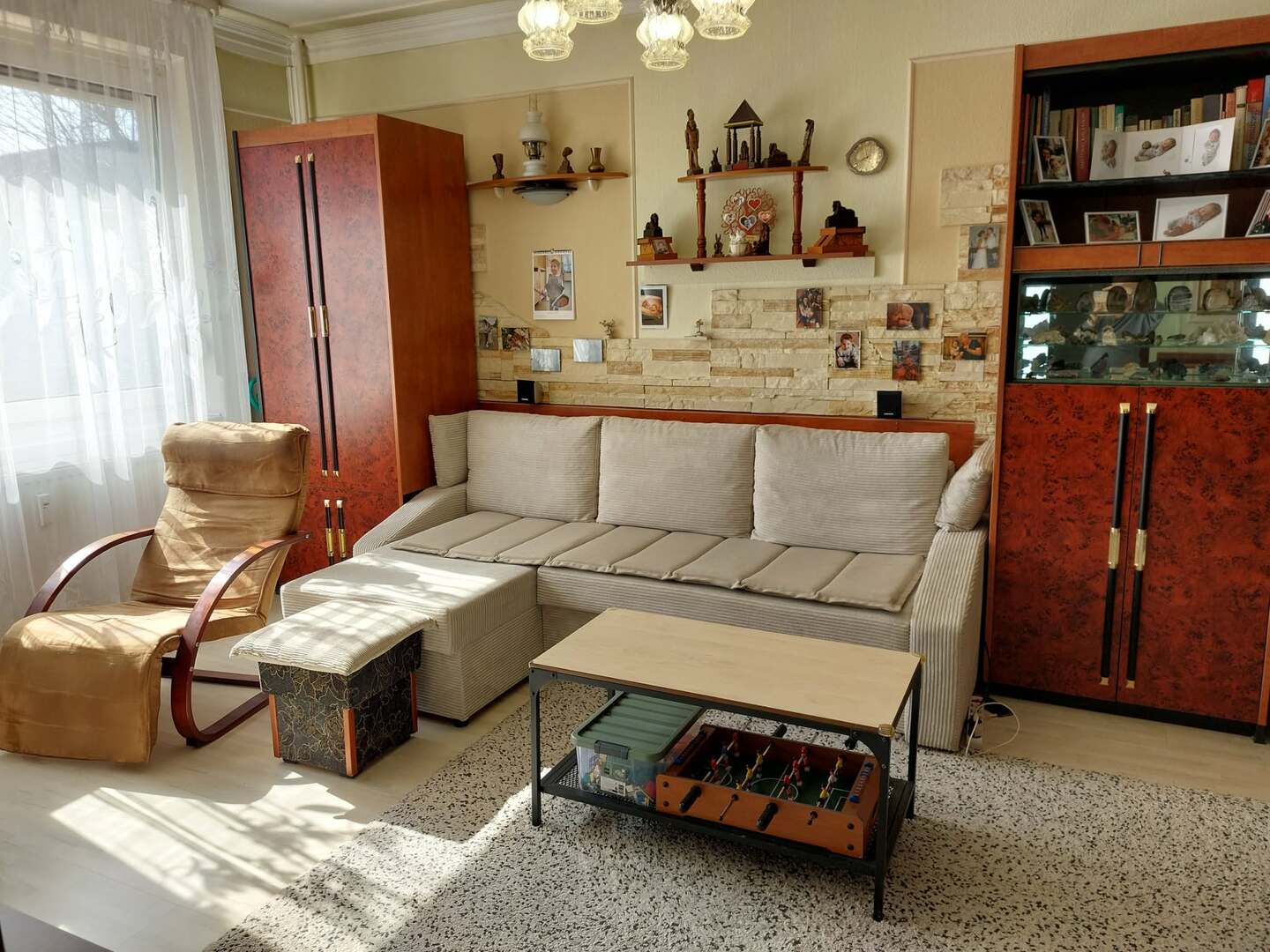 A lakás egyik különleges értéke, hogy körben napfényes, a természetes fény szinte egész nap átjárja – minden oldalról beragyogja a tereket, így világos, élettel teli otthoni hangulatot teremt.