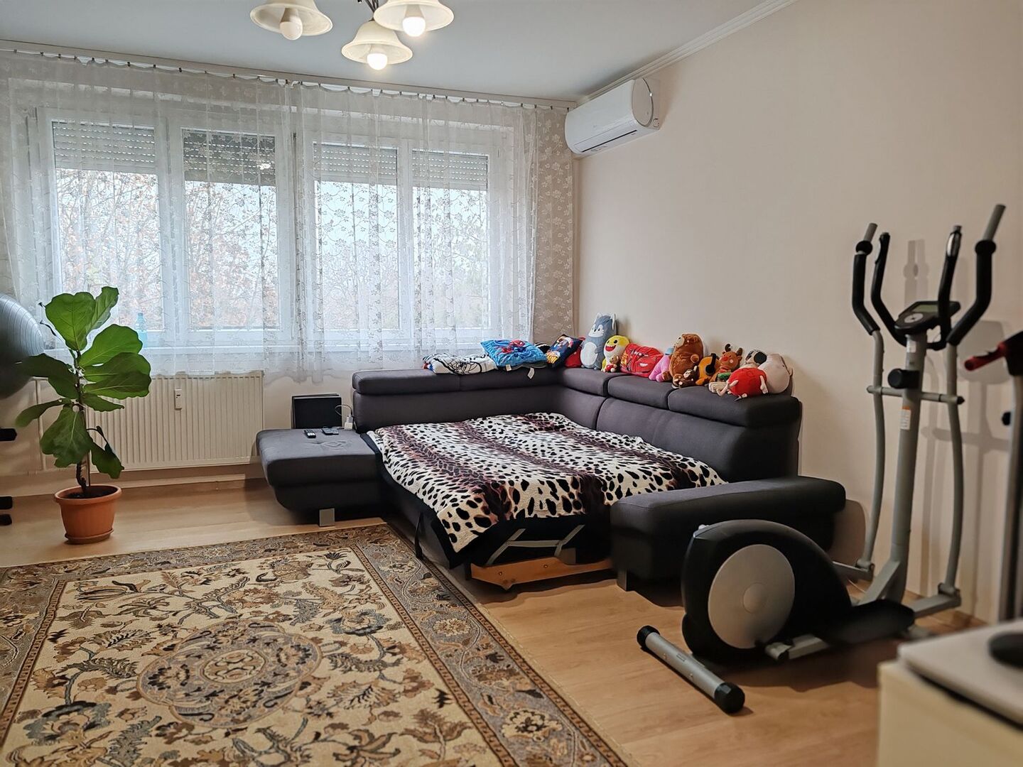 A nagyobbik szoba klímával felszerelt.
