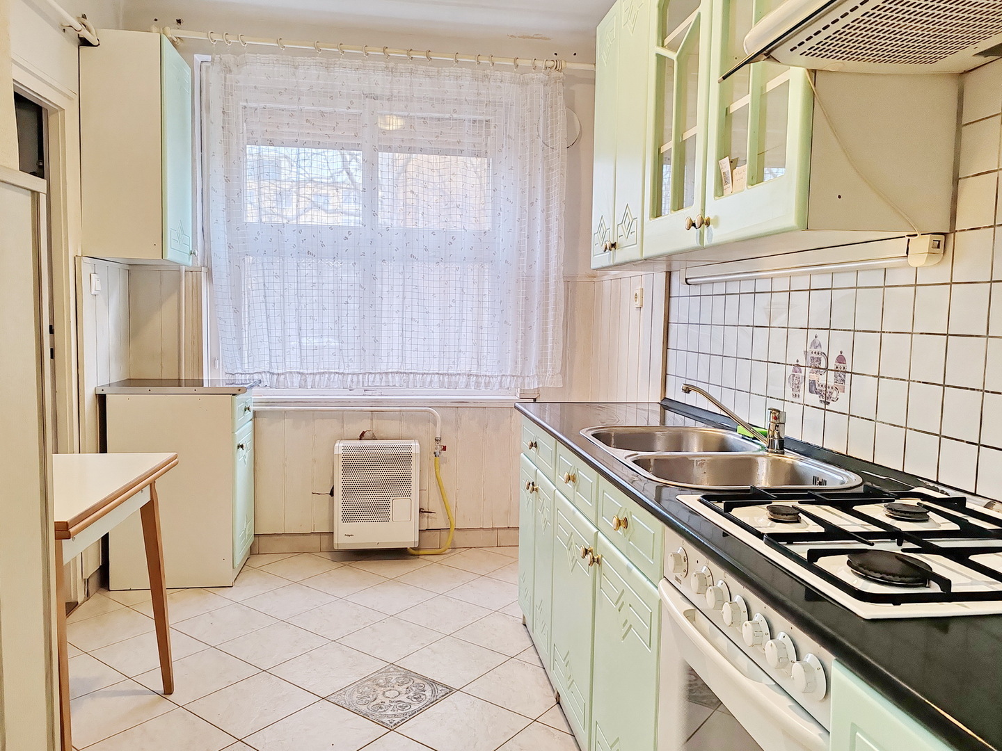 A lakás fűtése konvektoros a melegvizet gáz vízmelegítővel üzemel.