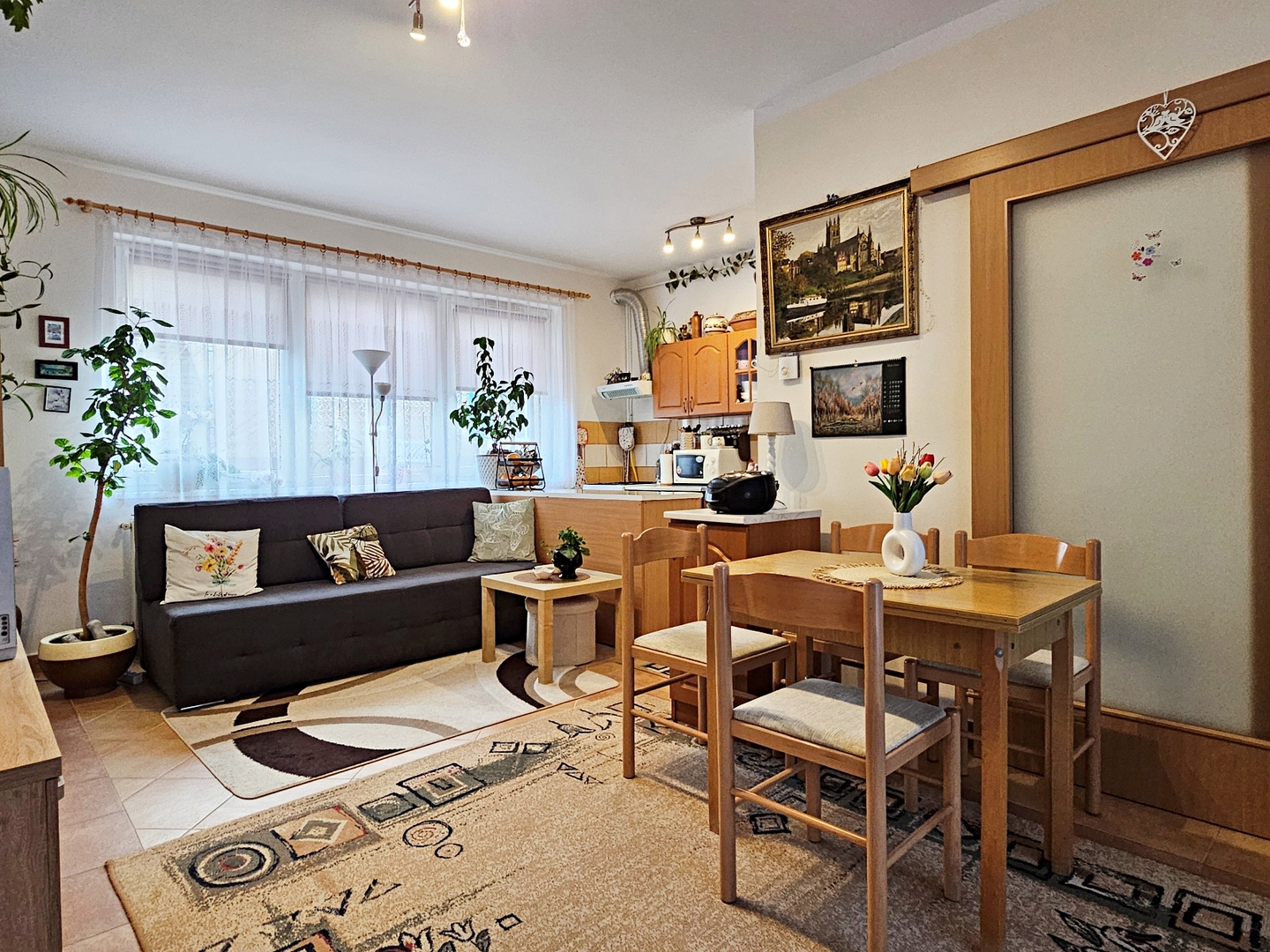 A lakás megkímélt állapotú, hangulatos, világos, napfényes. A zuhanykabint 2025-ben cserélték, ezen kívül nagyobb felújítás nem történt.