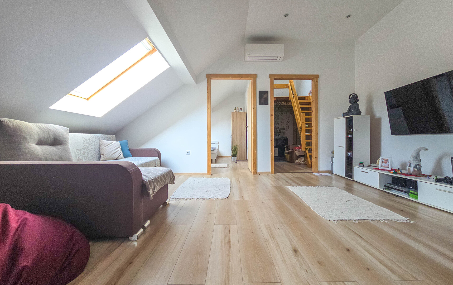 Napfényes, kényelmes terek jellemzik, külön kiemelném a galériázott kisebb szobát, ami gyerek részére külön kis kuckót rejt.