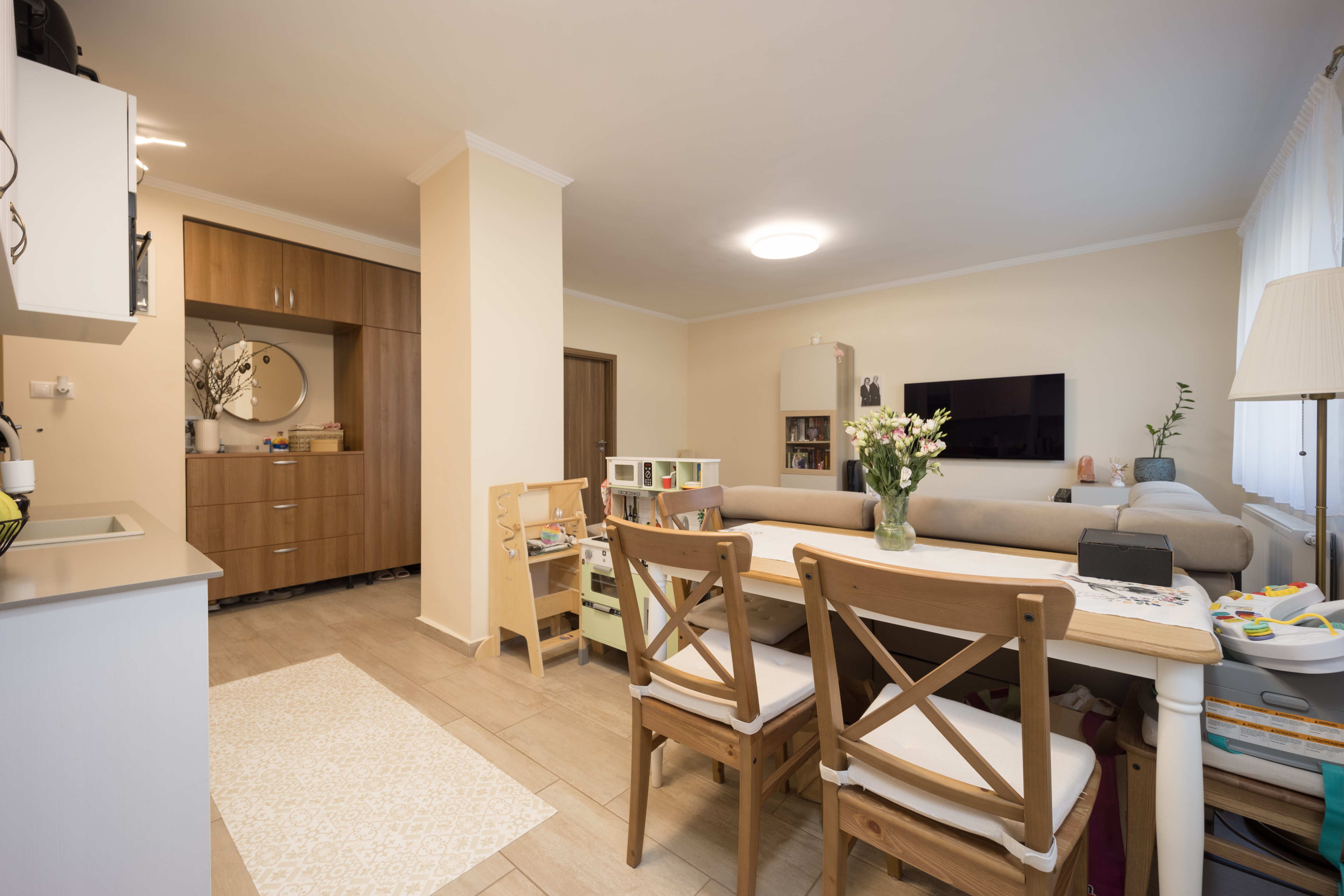 A vételár részét képezi a beépített és gépesített konyhabútor, a beépített szekrények, lámpatestek, karnisok és függönyök, így valóban egy komplett, átgondolt enteriőr kerül átadásra.