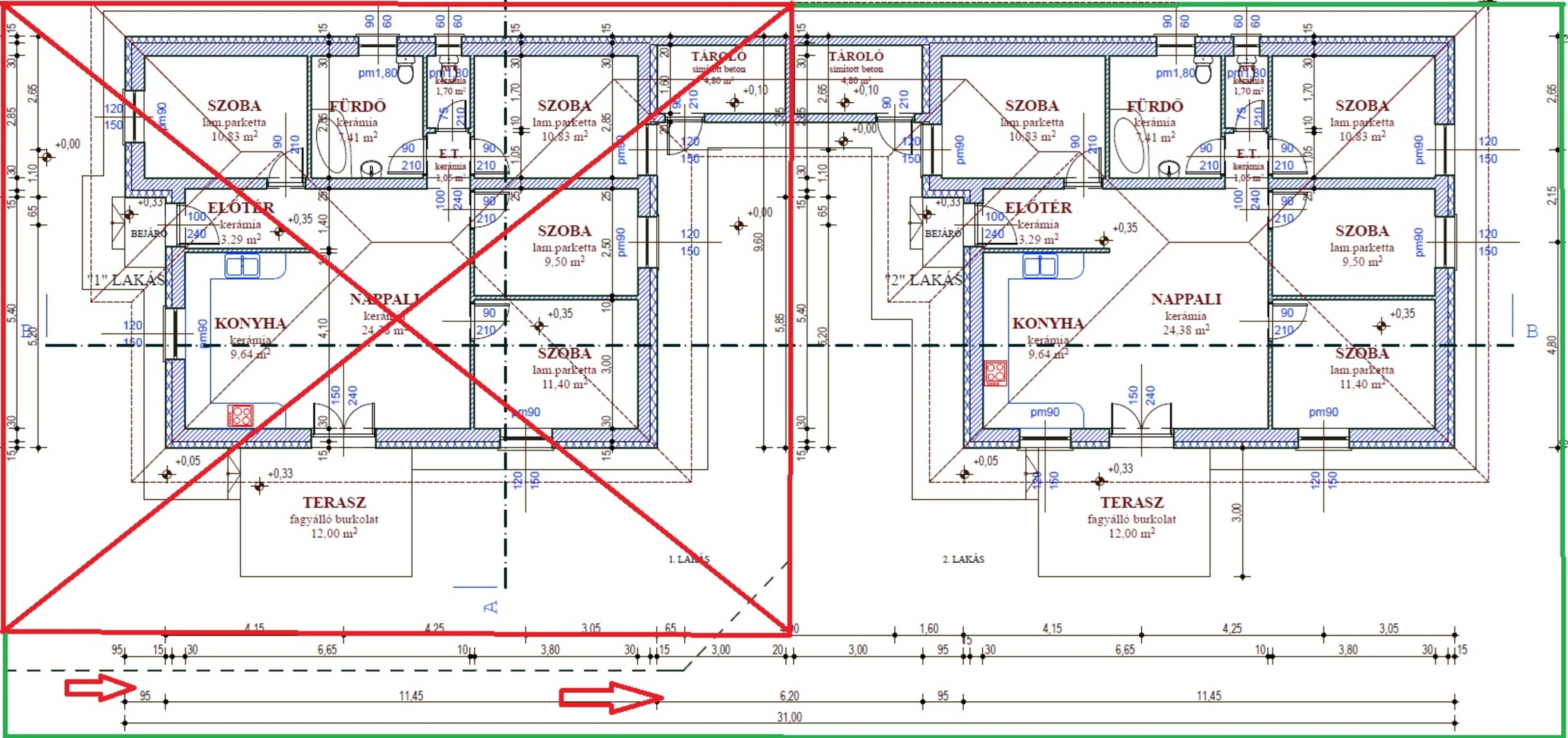 30 cm-es Ytong falazat, 12 cm hőszigeteléssel