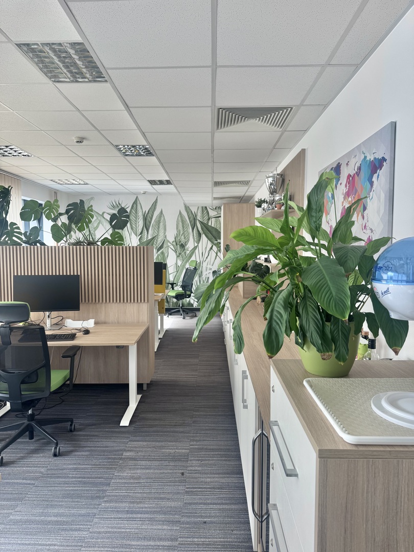 Az iroda egy 6. emeleti félszintet foglal magában, összesen 440 nm-en 9 különálló helyiséggel, étkezős konyhával, mosdókkal, IT-szobával, raktárral és recepcióval. Igény esetén az ingatlan fele is bérelhető (min. kb 200-250 nm-től)