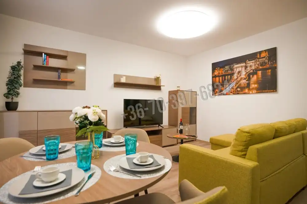 A lakást teljeskörűen bútorozott, gépesített, ide már csak költözni kell. A ház alatti teremgarázsban 4 méretben bérelhető parkolóhely, 30. eFt+ÁFA/hó áron. A lakás 2 havi kaució+1 havi bérleti díj megfizetésével költözhető, megtekinteni hétközben 9-16 óra között lehet.